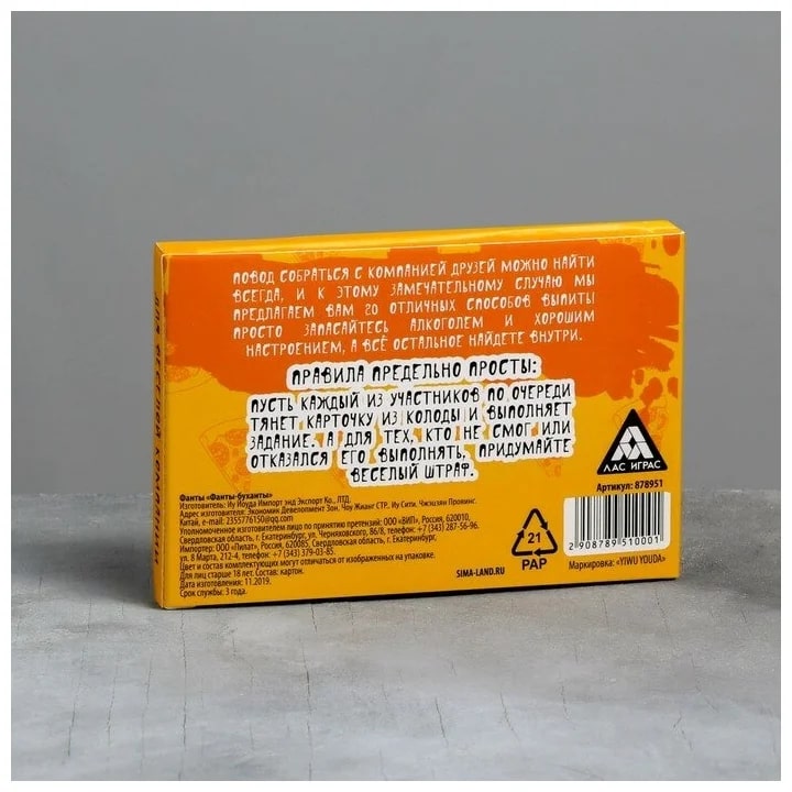 Купить игра для компании "фанты буханты" 20 карт от 100 руб. с доставкой до пункта выдачи в Истре. Интернет магазин ДекаМаркет. Оплата при получении.