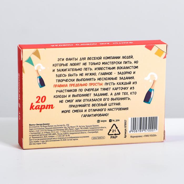Купить игра для компании "фанты звезда бокала" 20 карт от 120 руб. с доставкой до пункта выдачи в Истре. Интернет магазин ДекаМаркет. Оплата при получении.